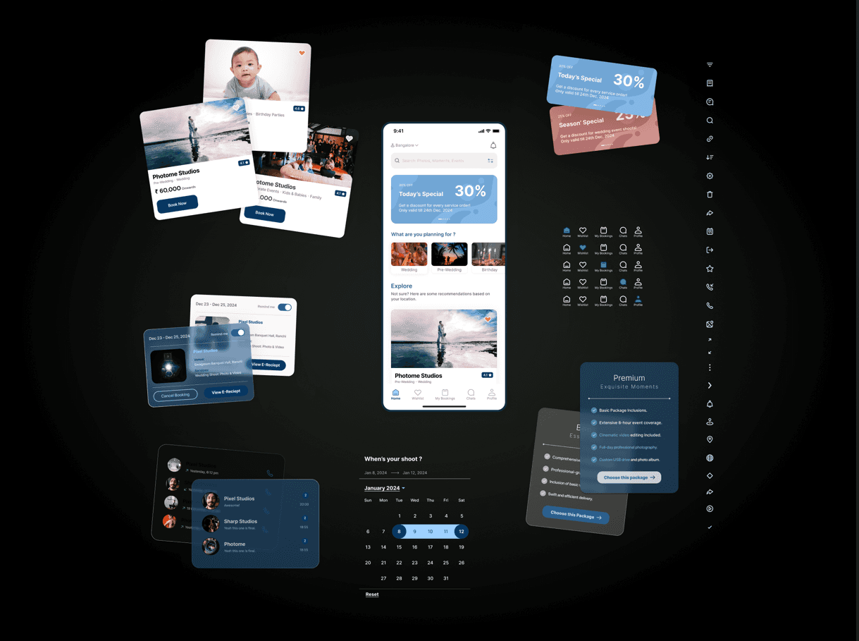 Simplifying event photography bookings by connecting users with trusted photographers, addressing the challenge of reliable services.